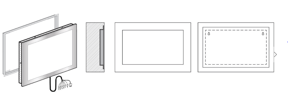 При таком виде монтажа телевизор вешается на стену как обычное зеркало или картина в багетной раме.